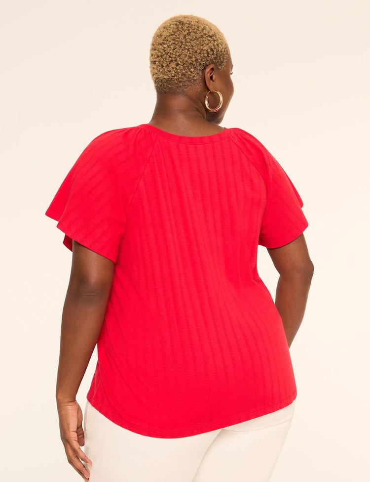 SHIRRED FLUTTER-SLEEVE TOP