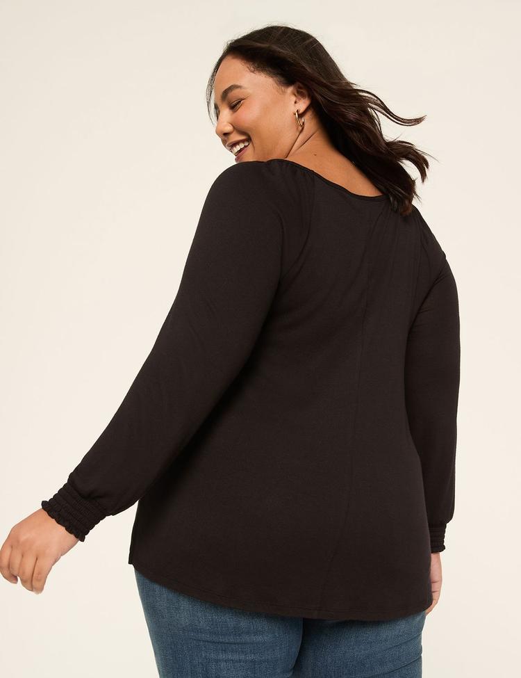 SMOCKED-CUFF BOATNECK HACCI TOP