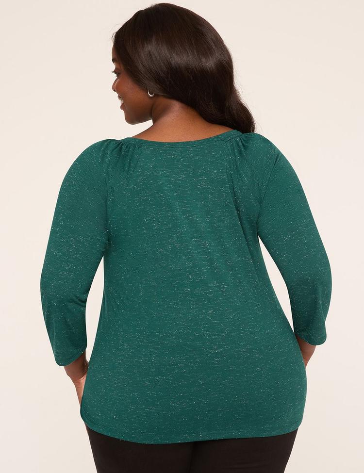 SPARKLE SMOCKED-SHOULDER LONG-SLEEVE TOP