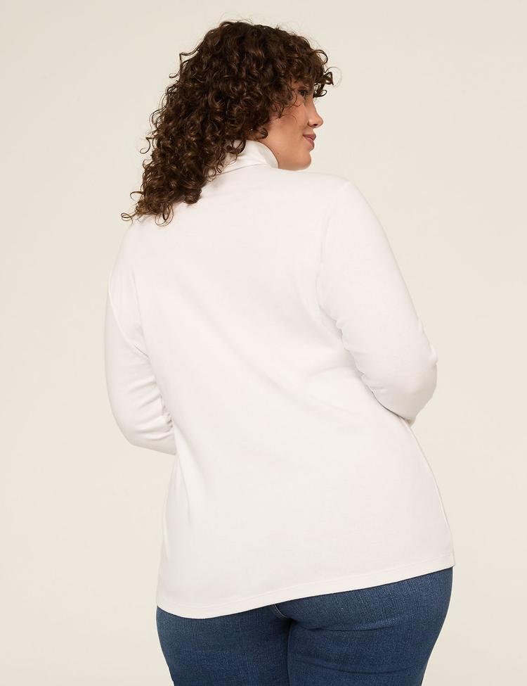 Soft, stretchy knit fabric and a classic regular fit define this plus size turtleneck shell. Its long sleeves and hip length silhouette make it an ideal layering piece or standalone top for cooler seasons. The clean white solid hue and minimalist design offer versatile style for casual days, workwear, or business casual settings. Covered back and pullover closure enhance everyday comfort and ease. This timeless turtleneck pairs effortlessly with cardigans, blazers, or jeans for a polished, cozy look.