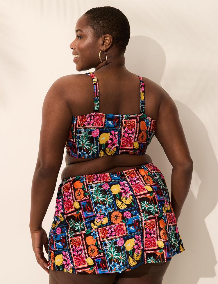 Available in Plus Size A bikini top with comfort and support like your favorite plunge bra! You'll love the sexy silhouette, knot detail, underwire support and long line coverage for all-day comfort (by the pool)! FIT: Plunge underwire longline bra. Underwire support YOU ASKED, WE LISTENED! Now with a built-in hook-and-eye closure for best-in-class support FEATURES: Lightly lined, cut & sew foam straps Adjustable straps Knot detail FABRIC: Eco-Friendly Collection. Designed with eco-minded fabrics, partially made from recycled plastics. Hand Wash, Line Dry 83% Recycled Poly/17% Spandex WHY OUR SWIM: Intimate-inspired design Superior support + fit (just like our bras!) Both underwire and no-wire options Best-in-class comfort Covetable, eco-conscious fabrics Coverage options for every preference Strategic details that smooth & shape We listen to YOU! Design upgrades from customer feedback Item Number #411030 Imported Plus Size Swimwear Cacique Intimates ". Plus Size Underwire Knot-Front Bikini Top, in Postcards From Paradise, 42DDD, Women's, Cacique for Lane Bryant