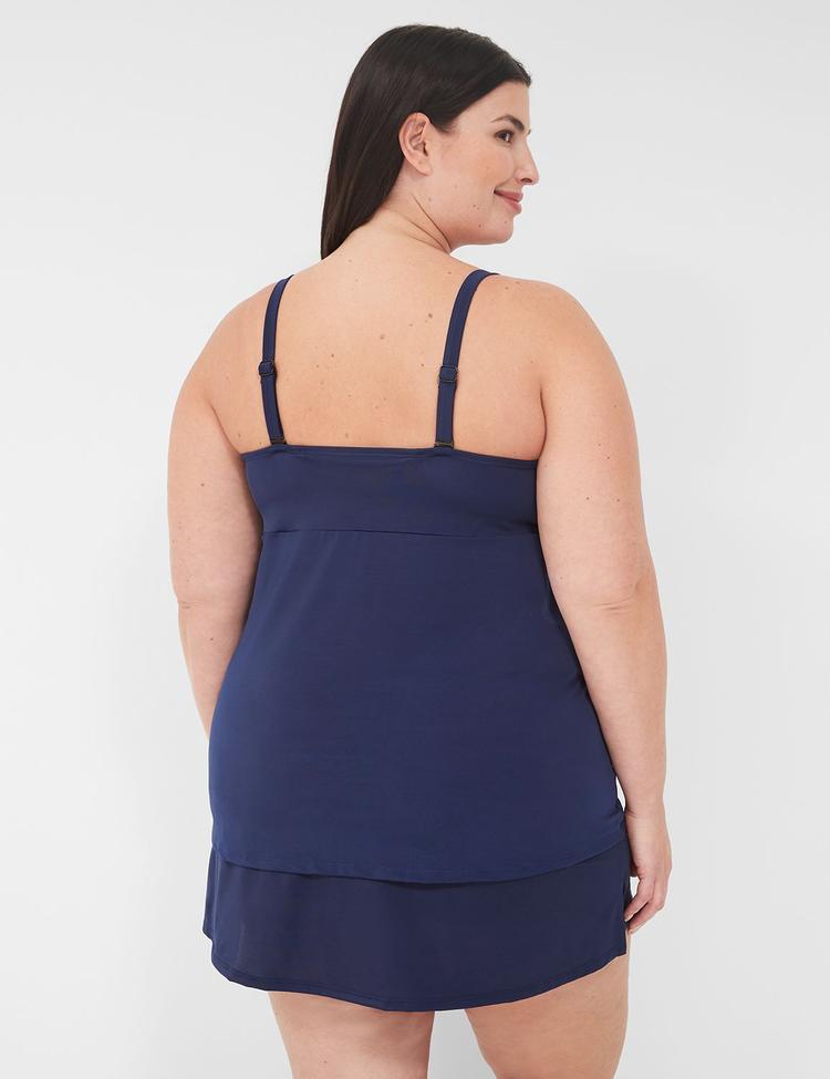 Maritime Blue meets flattering design in this Plus Size Underwire Knot-Front Tankini Top. Crafted from a supportive blend of nylon, polyester, and elastane, this sleeveless tank features wide adjustable straps and a deep plunge neckline with a knot-front detail, offering both style and comfort. The hip-length A-line silhouette ensures an easy fit with tankini coverage perfect for beach days, vacations, or poolside lounging. Thoughtfully constructed with an interior hook-and-eye closure and eco-friendly fabric, it delivers all-day support and a classic look for your summer swim essentials.