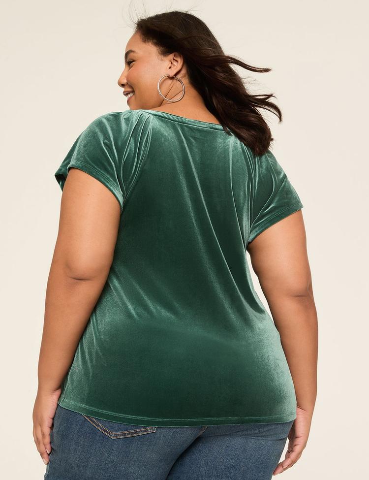 Soft plush velvet in a rich dark green creates a classic shell top with a flattering notch neckline and short regular sleeves. Designed in a plus size with a regular fit and hip length, this velvet top balances elegance and comfort, perfect for layering under blazers or pairing with denim. Its versatile style works effortlessly for casual weekends, business casual settings, or festive brunches and night outs during autumn and winter.