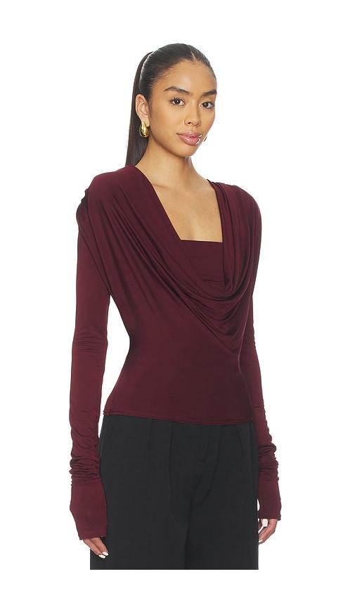 LAPOINTE COWL NECK BANDEAU TOP IN RED.