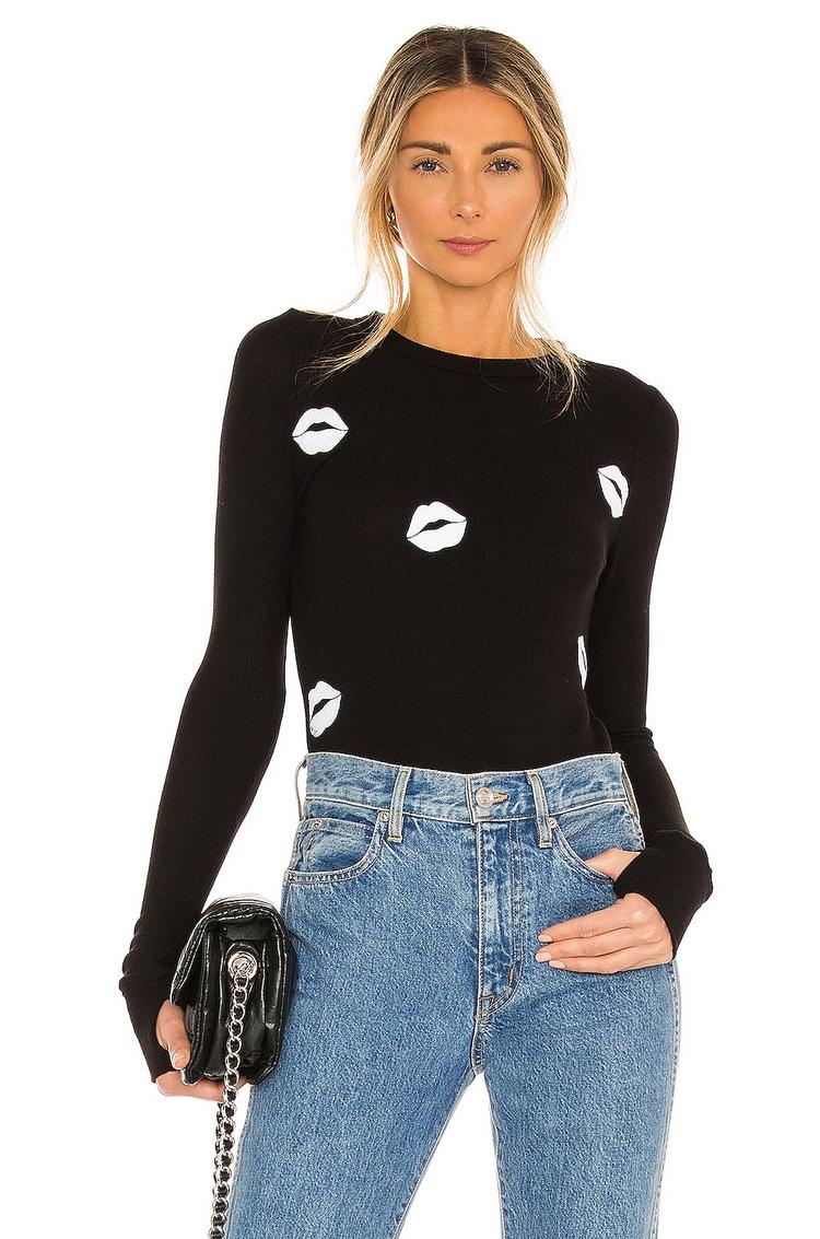 Effortless edge meets everyday ease in this Lauren Moshi McKinley All Over Lips Top. A sleek black knit in a lightweight rayon-spandex blend (95% rayon, 5% spandex) with a screen-printed all‑over lip motif that pops against the dark ground. The crew neckline and long sleeves skim the body in a relaxed, pullover silhouette, finished with a flattering rounded hem for easy tucking or untucked styling. Wear it solo with jeans for a casual daytime look, or layer under a blazer for weekend brunch or a night out. Made in USA, ultra-soft, and endlessly versatile.
