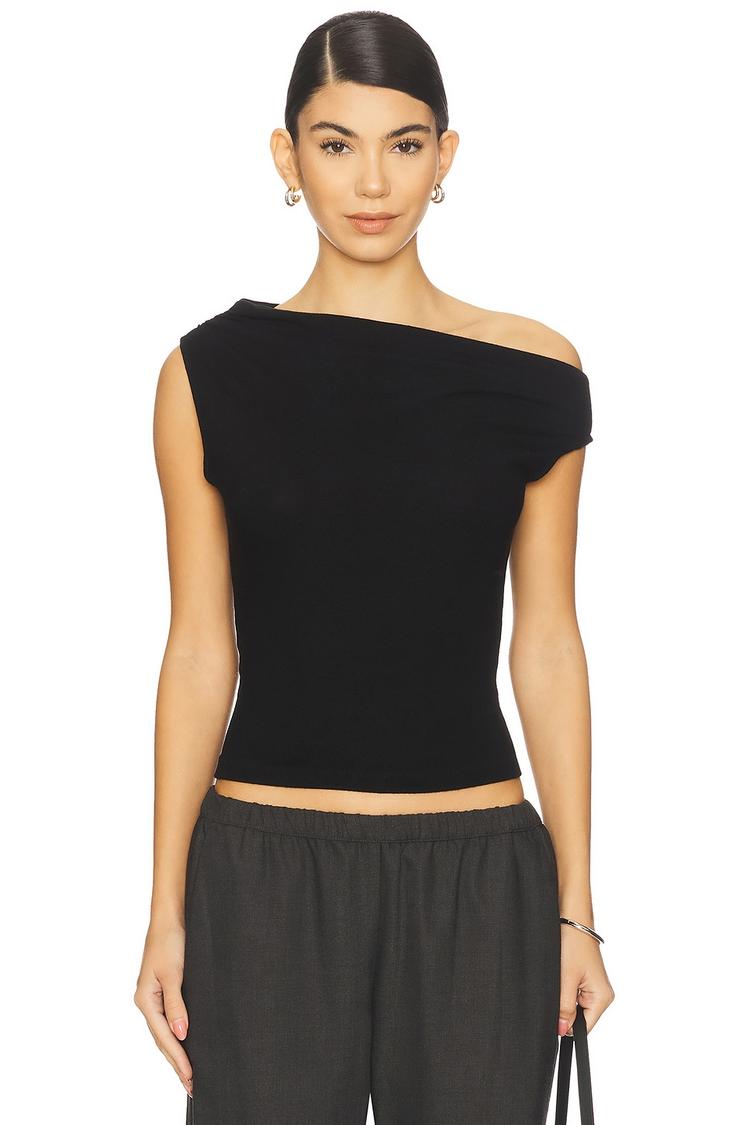 LAUREN RUCHED ASYMMETRICAL SHOULDER TOP