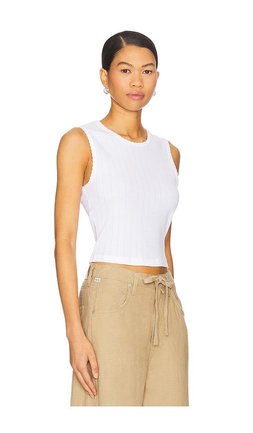 LESET POINTELLE SLEEVELESS CREW TOP IN WHITE.