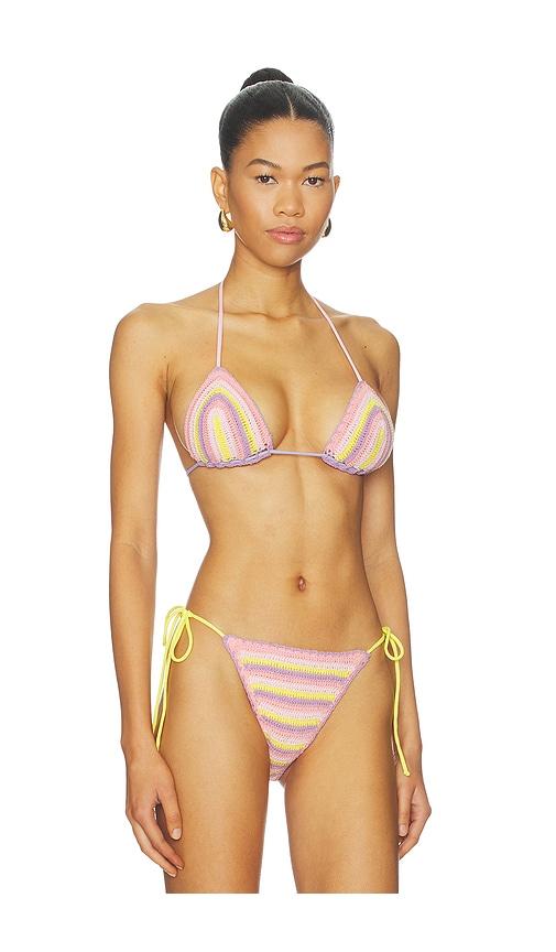 LESLIE AMON OLI RAINBOW CROCHET BIKINI TOP IN PINK,PURPLE.