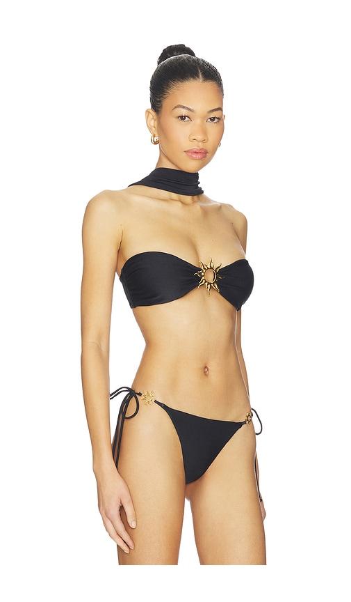 LESLIE AMON SUN BANDEAU NECK BIKINI TOP IN BLACK.