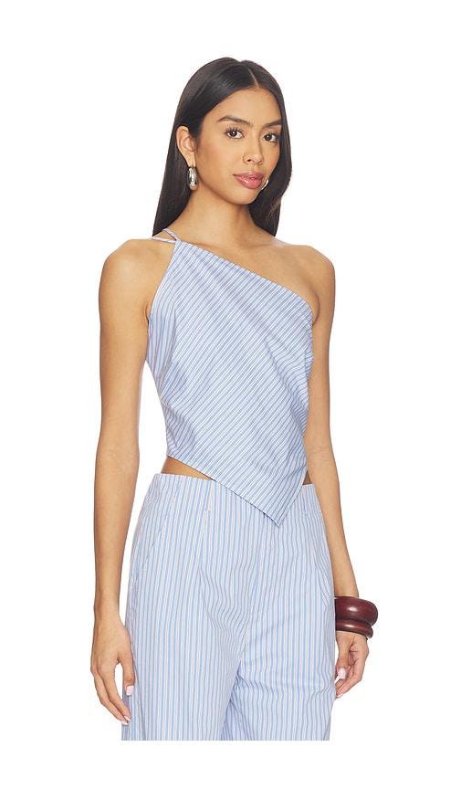 LINE & DOT X REVOLVE CLAUDINE ASYMMETRICAL TOP IN BLUE.