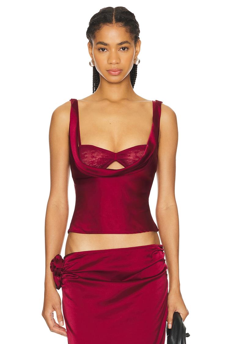 Rich in matte burgundy hues, this fitted camisole with a bralette overlay features a flattering sweetheart neckline and wide straps that enhance its modern, sexy appeal. Crafted from a polyester-elastane blend, it offers a sleek silhouette and subtle stretch for comfort. The hidden side zipper closure adds a seamless finish, making it ideal for night outs, cocktail parties, or date nights. Its waist-length cut pairs perfectly with skirts or high-waisted pants, delivering a chic and confident look for spring and summer occasions.