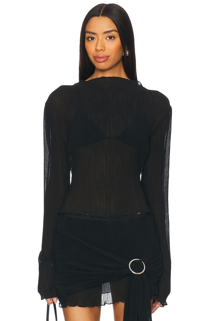 Lightweight charmeuse fabric and a fitted silhouette define this modern long sleeve shell top in matte black. The semi-sheer texture adds a subtly sexy edge, while the crew neck and regular long sleeves keep it polished and versatile. With hip length and pullover styling, it’s perfect for layering or wearing on its own. Ideal for casual days, night outs, or date nights, this chic top blends comfort with contemporary style effortlessly.