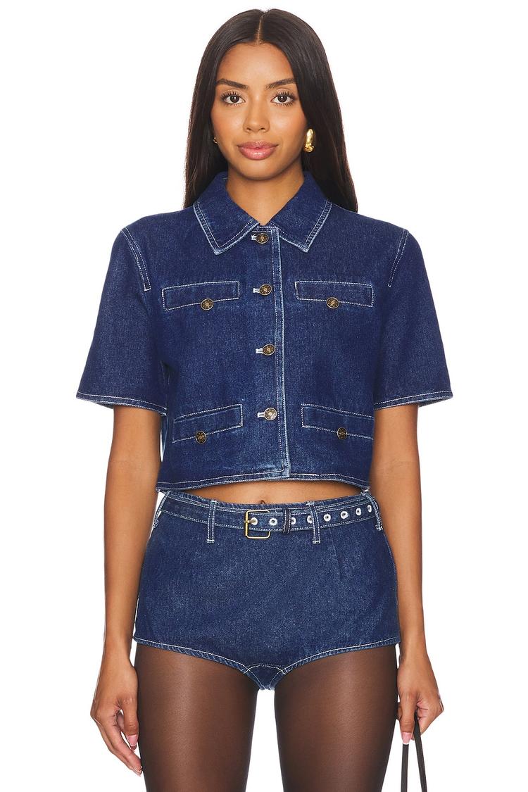 Structured with a boxy fit and crafted from lightweight matte blue cotton denim, this cropped top features a classic collar and front button closure. Its half sleeves and four-pocket design add a casual chic edge, perfect for spring and summer days. The covered back and regular sleeves ensure comfort and style, making it versatile for streetwear, casual outings, or brunch with friends. The neat stitching and functional pockets enhance its timeless appeal, ideal for those who appreciate relaxed yet polished denim essentials.