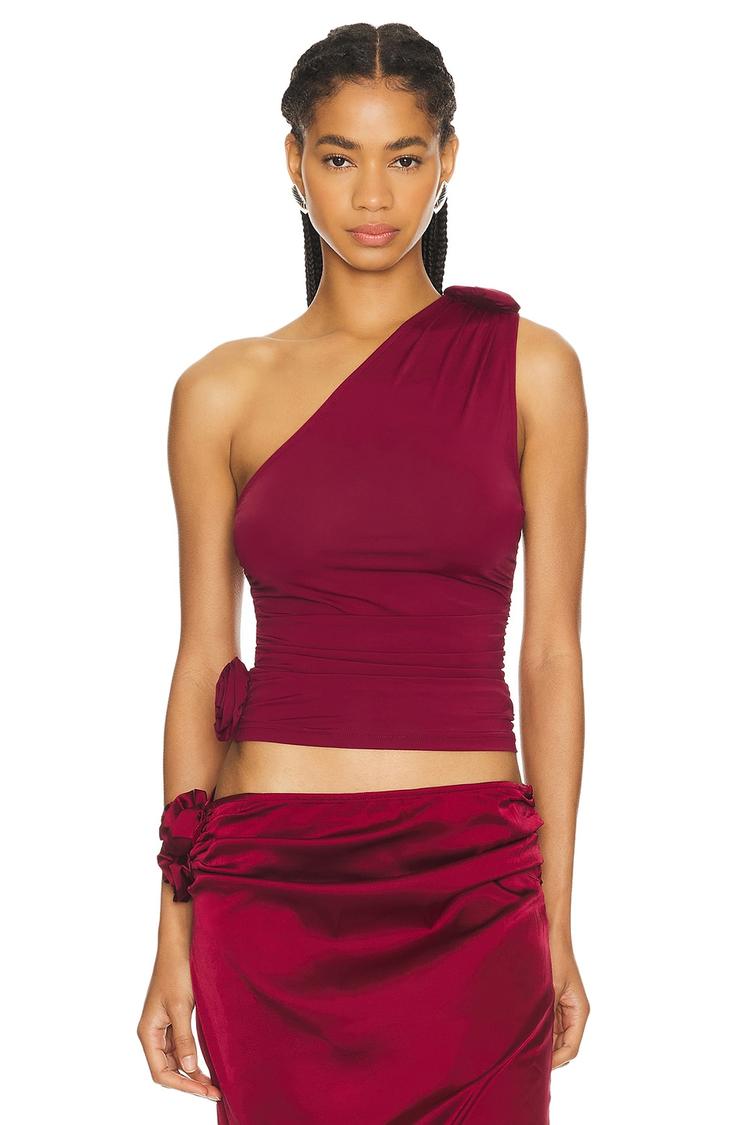 RENDEZVOUS ONE SHOULDER TOP IN GARNET