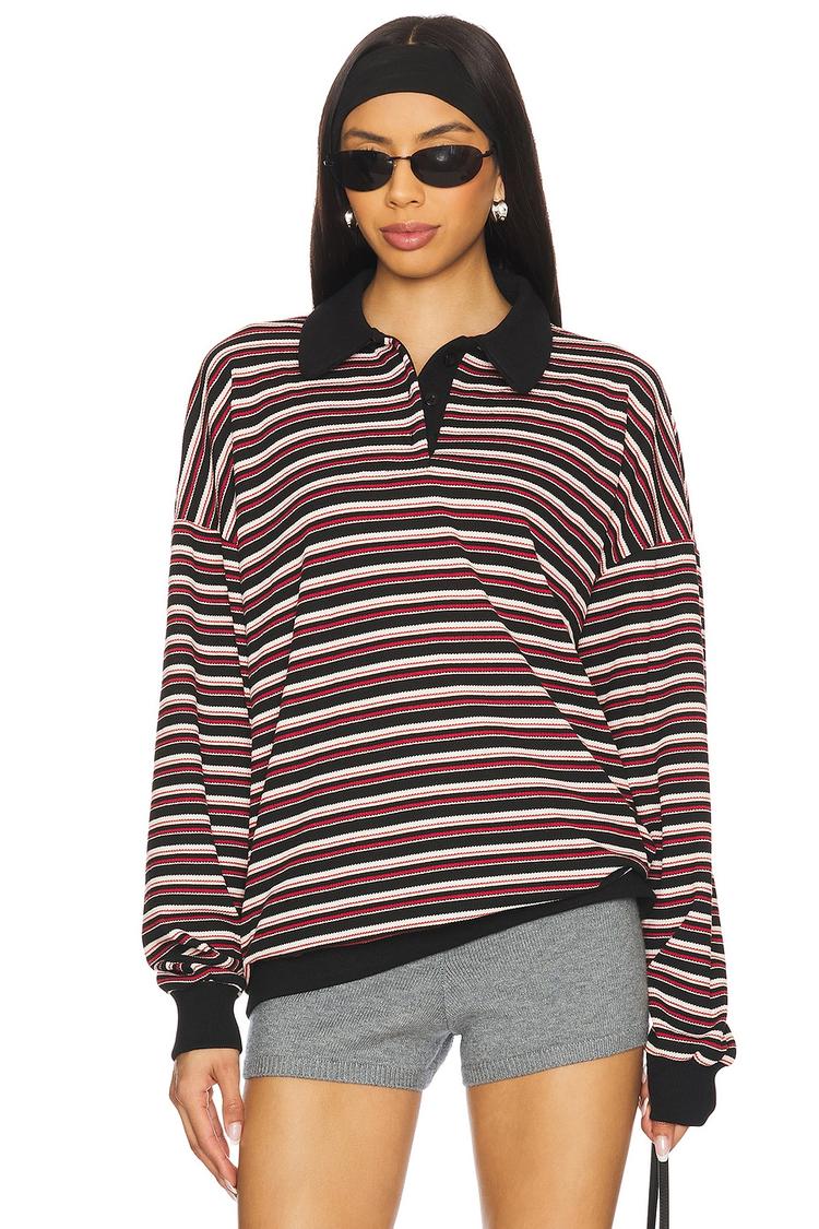 Classic stripes in black, dusty rose, and off-white color palette define this lightweight knit rugby jersey. Featuring a relaxed loose fit with long regular sleeves and a hip-length hem, the piece boasts a traditional henley neckline with a partial front button closure adding casual appeal. Crafted from a polyester-viscose-elastane blend, it offers breathable comfort and slight stretch for everyday ease. Ideal for casual outings, street style looks, and everyday wear, this versatile jersey brings laid-back chic to your wardrobe with its timeless sporty vibe.