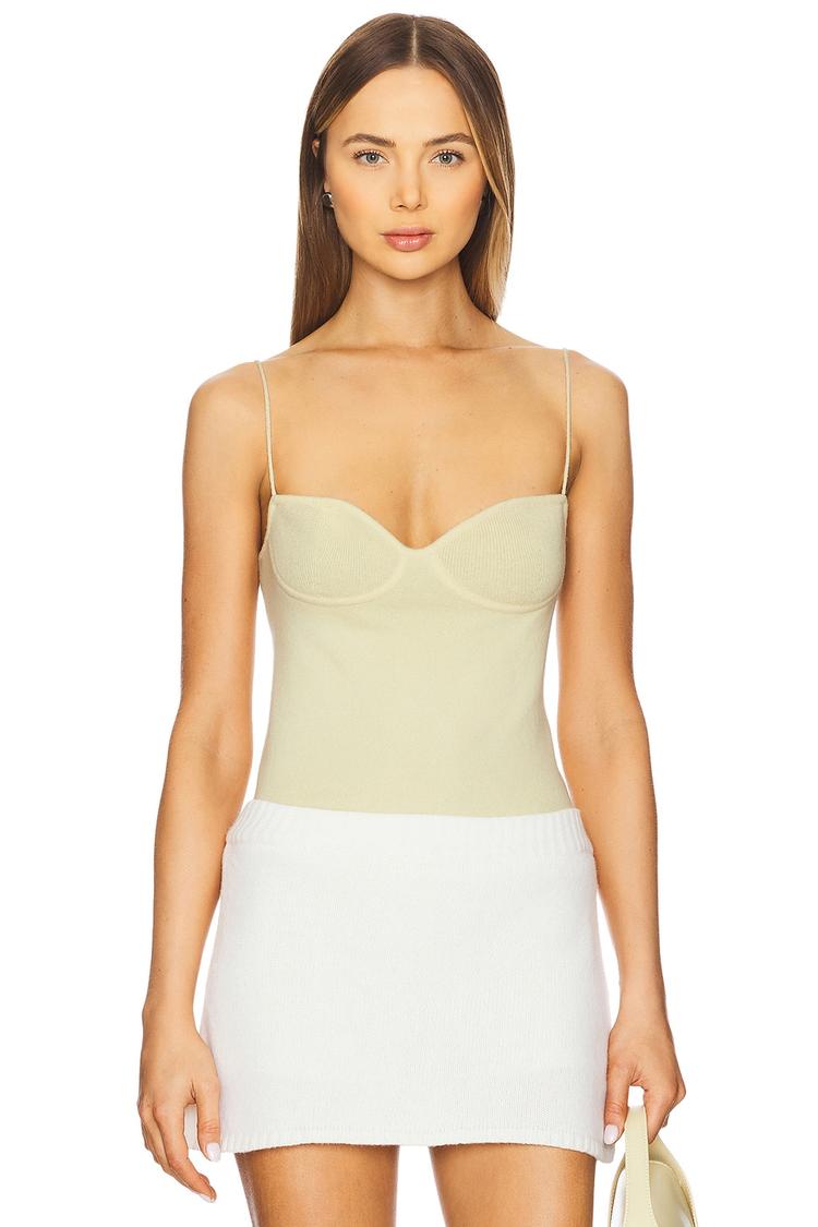 Soft butter yellow cashmere blends cozy luxury with a fitted corset silhouette, highlighted by delicate sweetheart neckline and slender spaghetti straps. The lightweight knit fabric and waist length cut ensure a flattering, breathable fit, making it ideal for spring and summer days. Perfectly suited for casual outings, brunch dates, or intimate evenings, this minimalist chic top is a versatile addition to elevate your wardrobe with effortless elegance.