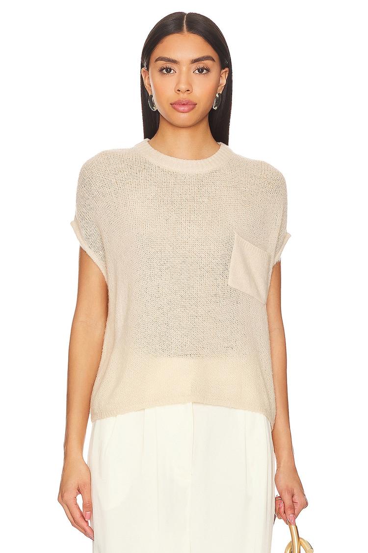 Embrace airy, easy elegance with this Lna Loma Semi Sheer Sweater. Crafted in a soft open-knit blend (77% acrylic, 20% nylon, 3% spandex), it drapes in a relaxed hip-length silhouette with a round neckline and short half sleeves. The semi-sheer knit is finished with subtle ribbed trim and a color-block band for a refined, tonal look. A discreet chest pocket adds practical flair. Pair with white or neutral bottoms for a breezy casual or brunch-ready outfit—perfect lone layer or layered over a cami. Lightweight, versatile and effortlessly chic for warm-weather days.