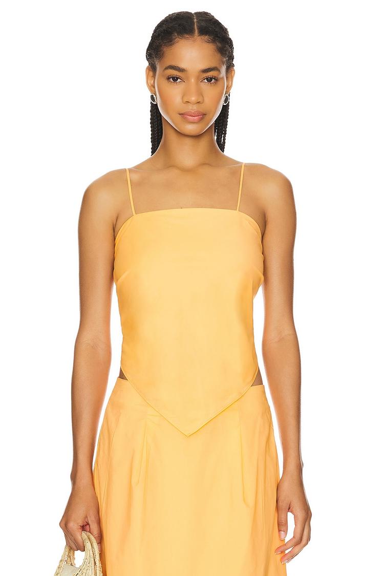 Lightweight poplin cotton shapes this chic camisole with a straight neckline and slim fit, featuring adjustable spaghetti straps and a distinctive tie-back closure. Its cropped kerchief hem adds a modern twist, perfect for warm spring and summer days. Ideal for casual outings, brunch dates, or relaxed evenings, this minimalist tank combines comfort and style effortlessly.