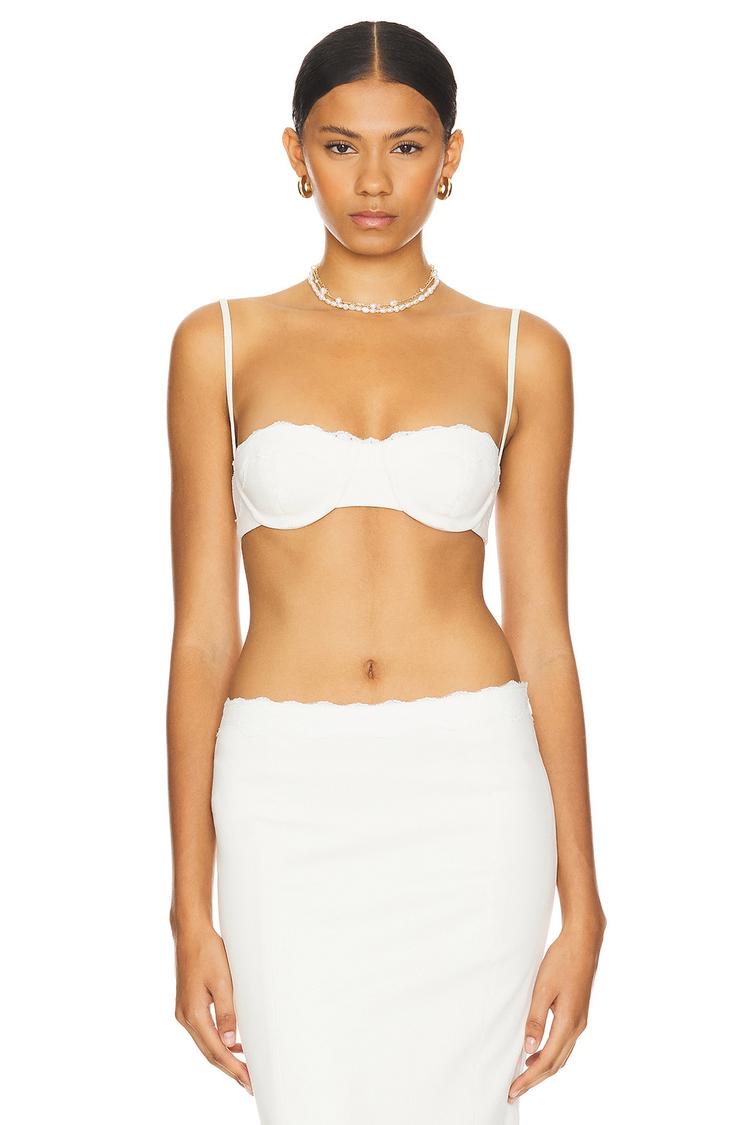 Delicate lace trim borders this fitted bralette crafted from a comfortable cotton-viscose blend with a smooth poplin texture. Featuring adjustable spaghetti straps and a hook closure at the elastic back, this cropped bralette offers a minimalist yet chic silhouette perfect for spring and summer days. Ideal for casual outings, beach vacations, or relaxed get-togethers, it combines style and comfort effortlessly. The straight neckline and light padding with underwire cups provide subtle structure, making it a versatile piece for layering or wearing alone in warm weather.