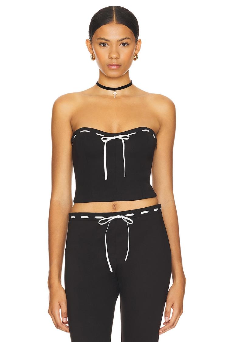 Sleek and modern, this fitted cropped top showcases a straight, strapless neckline with a contrasting white ribbon detail accentuating the front and borders. Crafted from a smooth viscose-nylon blend with elastane for stretch, it features a hidden side zipper for a seamless finish. Ideal for warm seasons, this minimalist piece pairs effortlessly for casual streetwear, brunch dates, or night outings, offering a chic yet understated silhouette that elevates any ensemble with its clean lines and subtle design details.