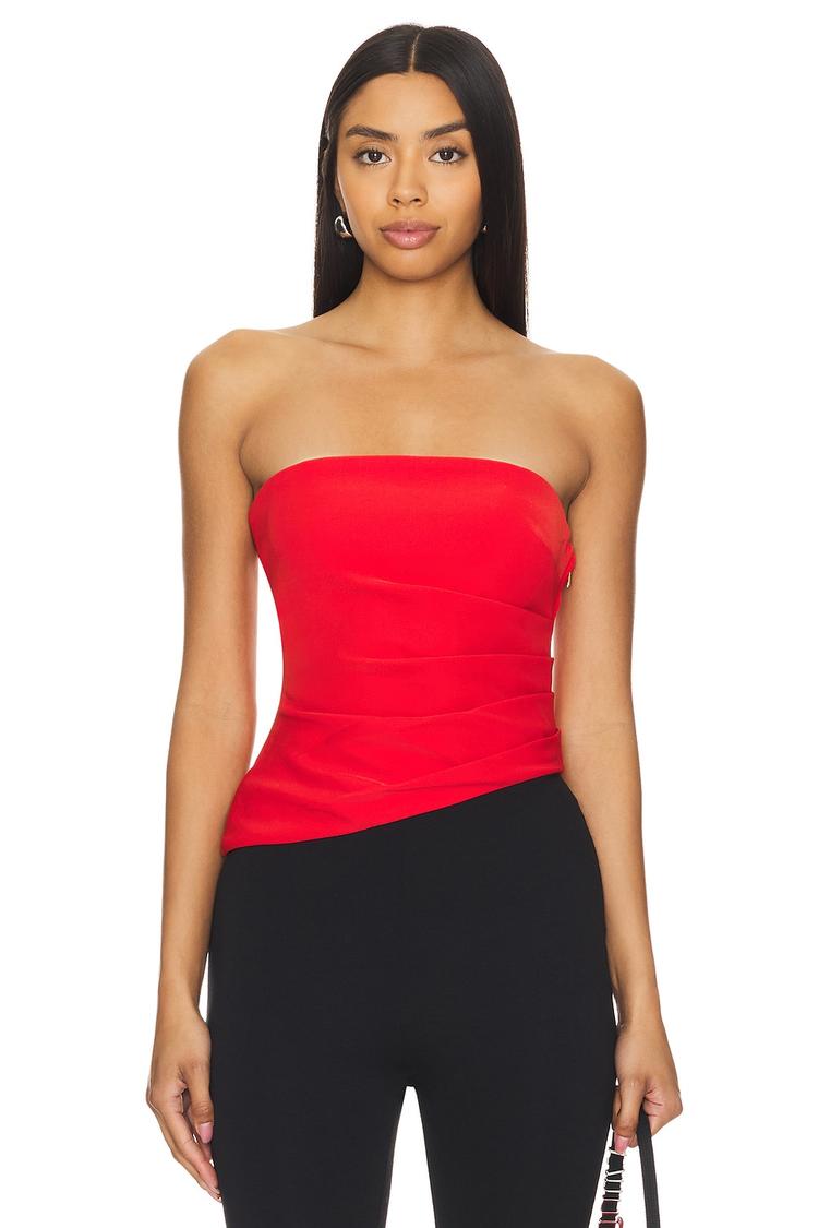 A vibrant red bandeau top with a fitted silhouette and sleek straight neckline, designed in soft polyester for a smooth finish. This sleeveless piece features delicate ruching along the sides and an asymmetric hem that adds a modern edge. The concealed side zipper ensures a clean look while enhancing wearability. Ideal for warm spring and summer evenings, this chic top effortlessly transitions from casual outings to night outs and date nights, making it a versatile staple for stylish, confident dressing.