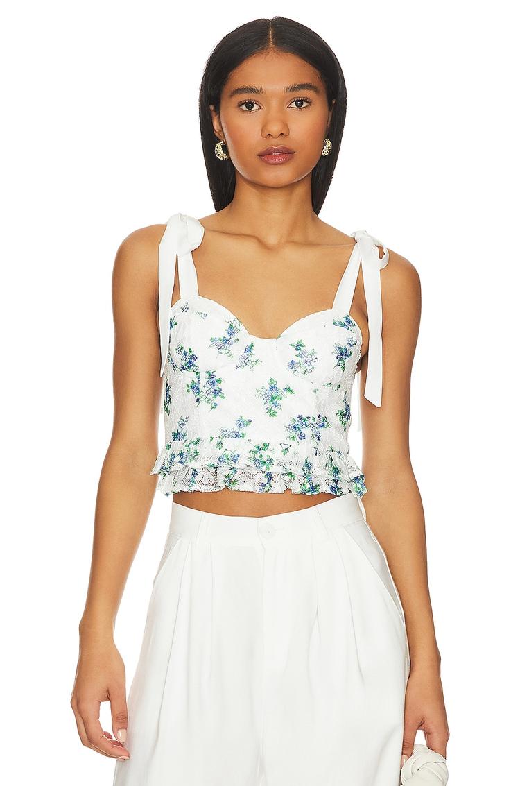 Delicate lace overlay and adjustable shoulder ties define this fitted peplum camisole, featuring a sweet heart neckline and a subtle ruffled hem. Crafted from lightweight polyester, this cropped top combines floral prints in soft blue and green hues on a pristine white base, perfect for spring and summer days. The concealed back zipper ensures a sleek finish, making it a versatile choice for casual outings, brunch dates, or romantic nights out. Its feminine silhouette and breathable fabric offer both style and comfort for warm-weather wardrobes.