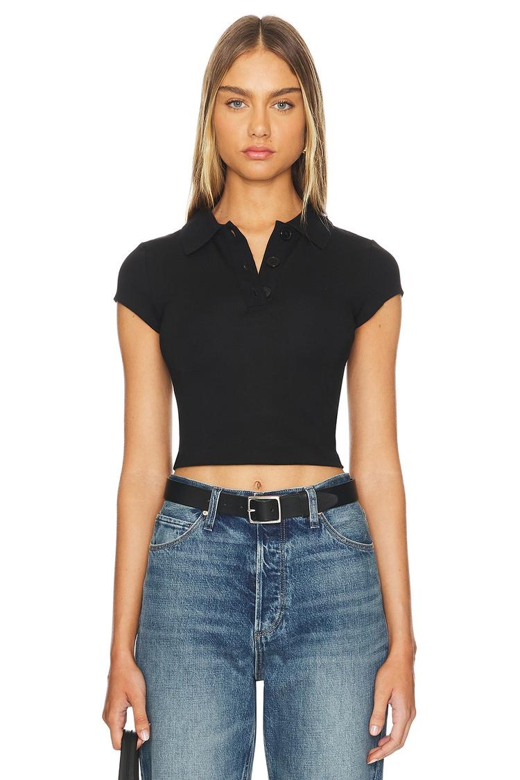 black cropped polo top