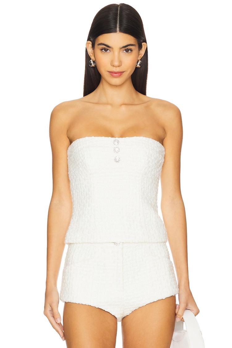 strapless tweed top