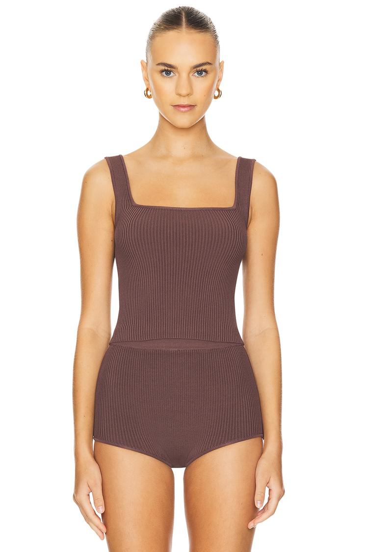 Soft rib knit fabric and a fitted silhouette define this square neck tank top with wide straps and a waist-length hem. Crafted from a comfortable viscose blend with nylon and elastane, it offers a minimalist and casual chic vibe perfect for spring through autumn. Its pullover design and covered back add to its ease and versatility. Ideal for casual outings, loungewear moments, or vacation days, this versatile tank pairs effortlessly with a variety of styles for a refined yet relaxed look.