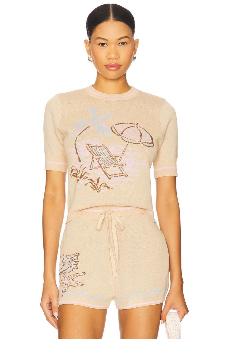 Soft midweight cotton knit shapes this waist-length shell top featuring a classic crew neck and half sleeves for balanced coverage. The relaxed regular fit and pullover style make it an easy, comfortable choice for casual days or loungewear. A whimsical brown graphic print adorns the front, adding a playful touch to the minimalist beige base. Ideal for spring and summer wear, this versatile piece pairs effortlessly with shorts or jeans for everyday outings, relaxed brunches, or casual meetups.