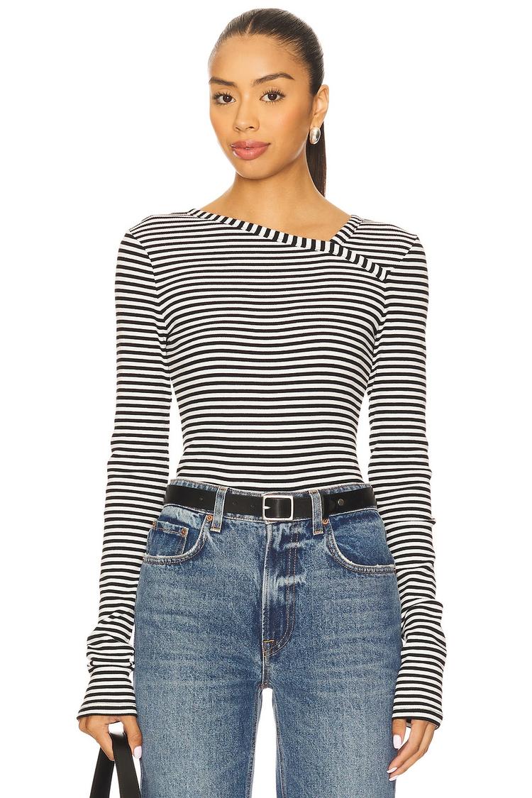 Soft ribbed cotton with a touch of elastane creates a sleek, slim-fitting shell that embraces a timeless black and white striped pattern. The boat neckline and long regular sleeves add to its minimalist charm, while the hip-length hem offers versatile wear. Ideal for casual days, everyday errands, or laid-back workwear, this pullover top blends comfort and style effortlessly. Its classic stripes and ribbed texture make it a staple piece for brunch dates and relaxed outings.