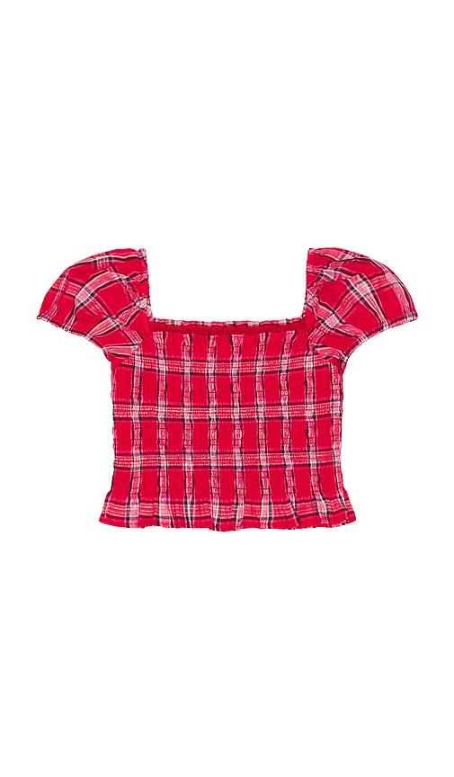 LOVESHACKFANCY TWEEN FABIELLE TOP IN RED.