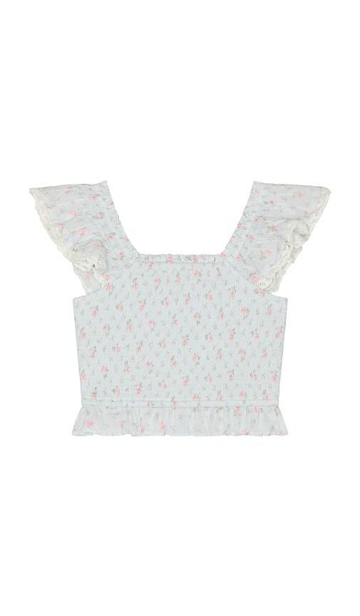LOVESHACKFANCY TWEEN JEANNA TOP IN BLUE.