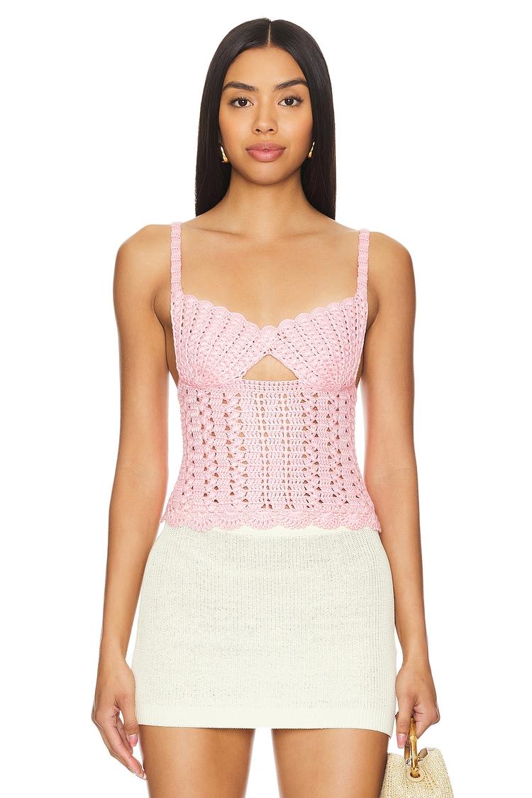 Soft pink crochet fabric and a fitted silhouette define this cropped tank with a sweet heart neckline and delicate spaghetti straps. The all-over crochet design adds intricate texture, making it perfect for warm spring and summer days. Versatile for casual outings, brunch dates, or relaxed evenings, this Majorelle Sandri Tank pairs effortlessly with high-waisted skirts or jeans. Lightweight cotton and viscose blend ensures breathable comfort with a bohemian chic vibe that's both cute and stylish.