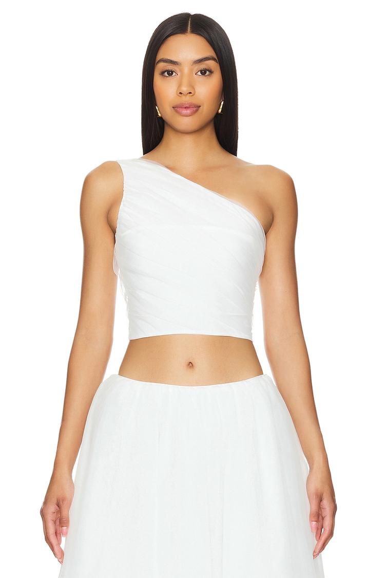 Crisp white polyester with a touch of elastane creates a fitted cropped top that features an asymmetric neckline and wide straps for a sleek sleeveless silhouette. The hidden side zipper ensures a smooth closure while the minimalist design highlights a modern chic vibe. Perfect for spring and summer, this versatile piece pairs effortlessly for casual outings, brunch dates, and stylish night outs, offering a clean and contemporary look that elevates your warm-weather wardrobe.