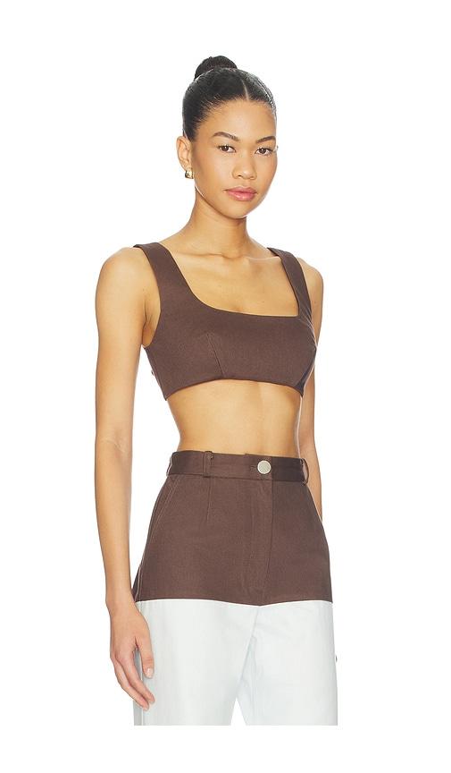 MATTHEW BRUCH TIE BACK CROP TOP IN CHOCOLATE.