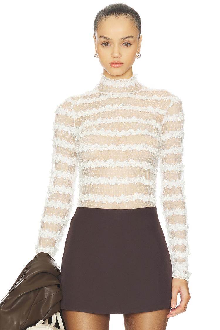 Delicate lace trim and sheer mesh combine in this slim-fit shell top featuring a high neck and long sleeves. The striped pattern adds subtle texture while the pullover style ensures easy wear. Crafted from polyester mesh fabric, this waist-length top offers a chic and modern silhouette perfect for casual outings, brunch dates, or stylish night events. Its elegant design and breathable fabric make it a versatile piece for spring, autumn, or all-weather wardrobes.