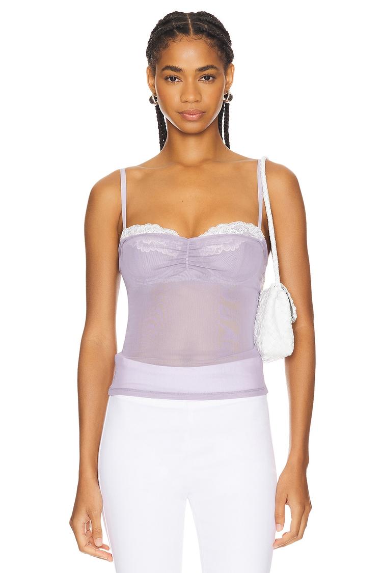 Delicate mesh fabric and lace trim define this fitted camisole featuring a sweetheart neckline and adjustable spaghetti straps for a perfect fit. The sheer panels and floating unpadded underwire cups add a modern, sexy touch, while the waist-length silhouette enhances versatility. Ideal for warm spring and summer evenings, this chic top transitions seamlessly from casual daytime outings to sophisticated night outs and romantic date nights. Crafted with polyester and spandex for a comfortable stretch, it promises both style and ease for your seasonal wardrobe.