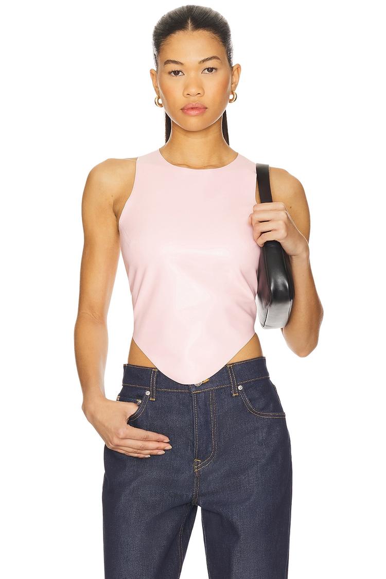 Shimmering light pink high-shine latex creates a sleek, fitted tank with a modern asymmetrical hem that adds a bold edge to any look. Featuring wide straps and a classic crew neck, this sleeveless top offers a flattering silhouette with a back zipper closure for easy wear. Perfect for spring and summer days, its contemporary design suits casual outings, brunch dates, and night outs where style meets comfort in a standout piece.