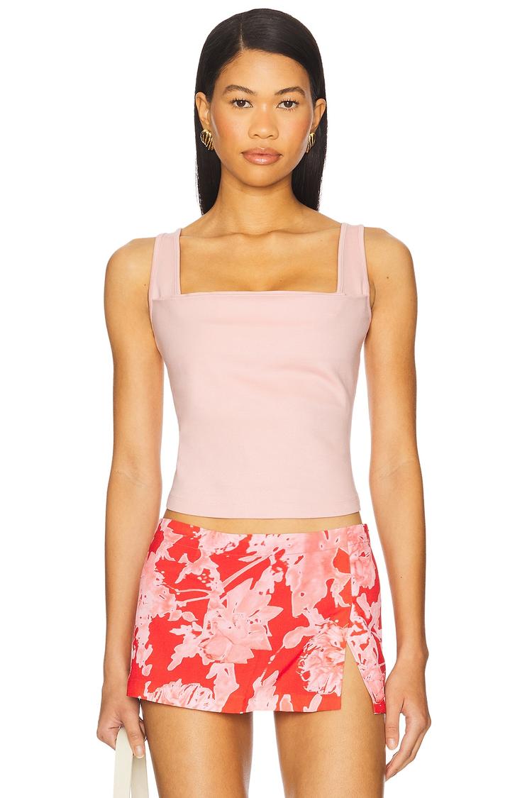 Soft matte dusty pink crepe fabric defines this fitted tank with a flattering square neckline and wide straps, ideal for warmer seasons. The button closure at the front layered neckline adds a subtle design element to the waist-length silhouette. Its minimalist yet chic style makes it a versatile choice for casual outings, brunch dates, or relaxed evenings out. Crafted from a comfortable rayon-nylon-spandex blend, this top offers both stretch and breathability, perfect for spring and summer wardrobes.