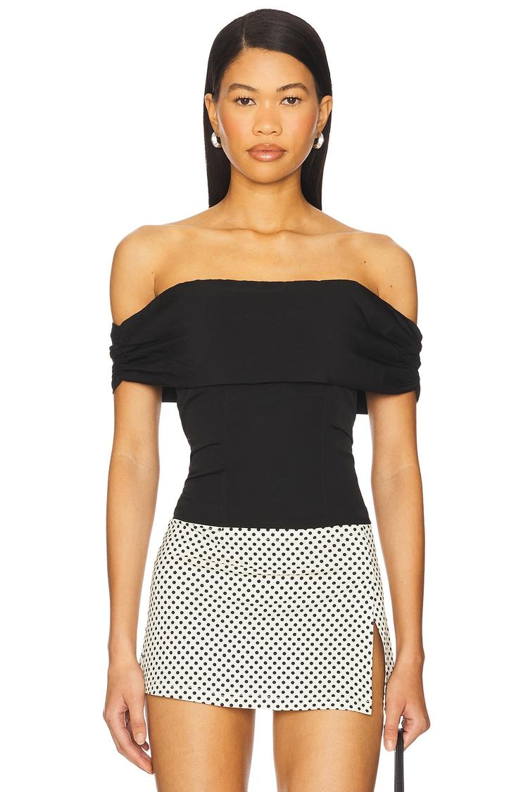 A sleek black cropped top crafted from midweight voile fabric with a fitted silhouette and off-shoulder styling that highlights the neckline and shoulders. Featuring a straight neckline and sleeveless design, it fastens with a back zipper closure for a polished look. The partially boned structure adds subtle support, making this piece ideal for spring and summer outings. Versatile for casual days, brunches, or night outs, this modern chic top pairs effortlessly with skirts or high-waisted pants for a refined yet effortless aesthetic.