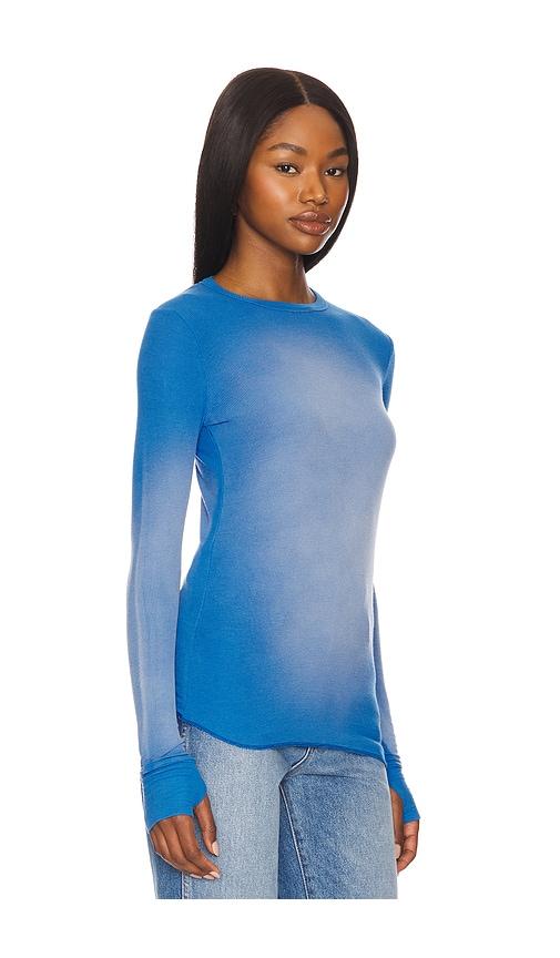 MICHAEL LAUREN ALICK LONG SLEEVE FITTED TOP WITH THUMBHOLE IN BLUE.