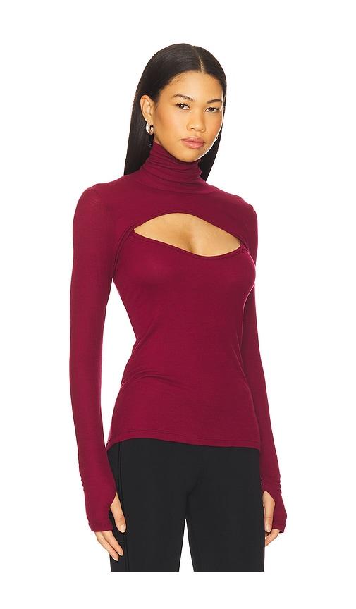 MICHAEL LAUREN CADE LONG SLEEVE TURTLENECK TOP IN BURGUNDY.
