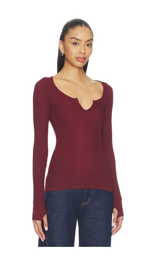 MICHAEL LAUREN MAEVE LONG SLEEVE SCOOP NECK TOP IN RED.