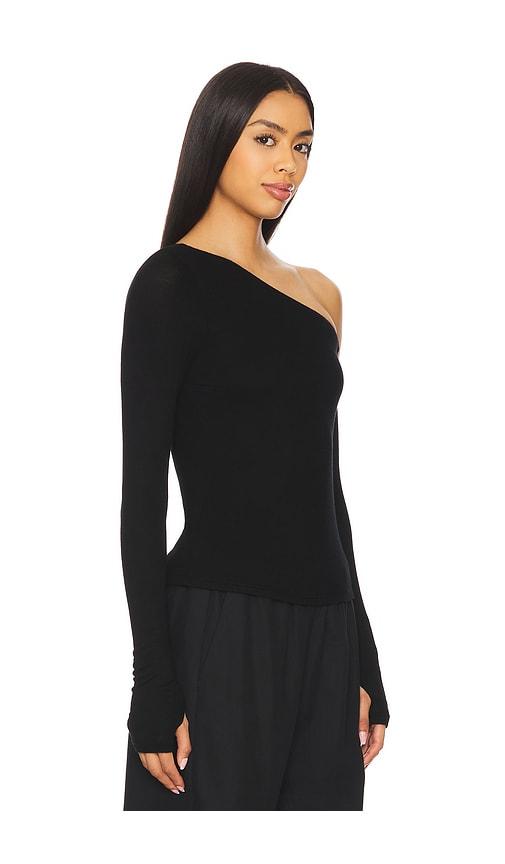 MICHAEL LAUREN MAGDALENO LONG SLEEVE ASYMMETRICAL FITTED COLD SHOULDER TOP IN BLACK.