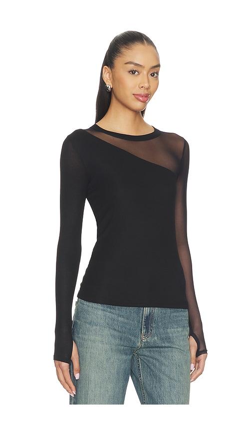 MICHAEL LAUREN SOLITA LONG SLEEVE ASYMMETRICAL TOP IN BLACK.