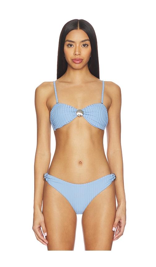 MINKPINK ZEPHYR TWIST BANDEAU TOP IN BABY BLUE.