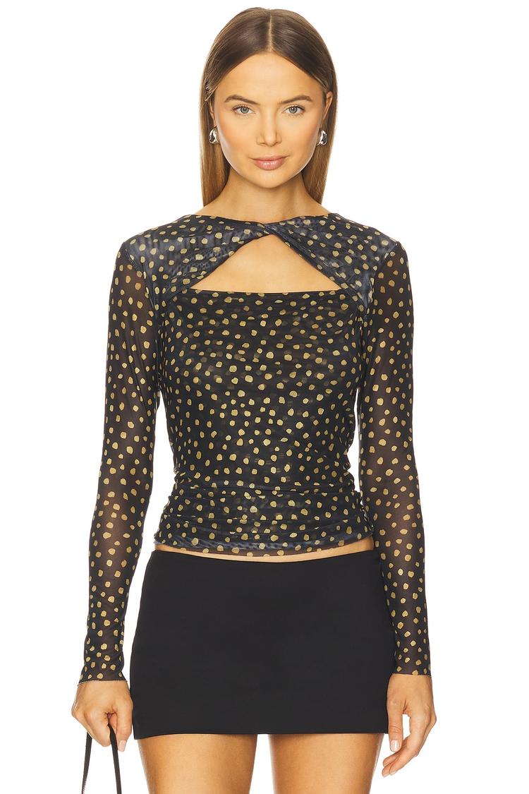 Lightweight mesh fabric and a fitted silhouette combine to create this modern, sexy shell top with long sleeves and a distinctive front cut-out detail. The black base is adorned with an all-over beige polka dot pattern, adding playful charm while maintaining sophistication. Designed for versatility, this waist-length top suits casual outings, night outs, and date nights, making it a trendy addition to your wardrobe. Its pullover style ensures easy wear, while the sheer mesh texture enhances breathability and allure.