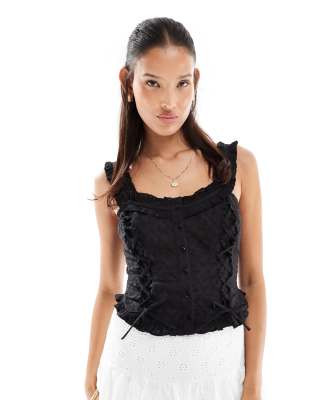 MISS SELFRIDGE COTTON EYELET CORSET TOP IN BLACK