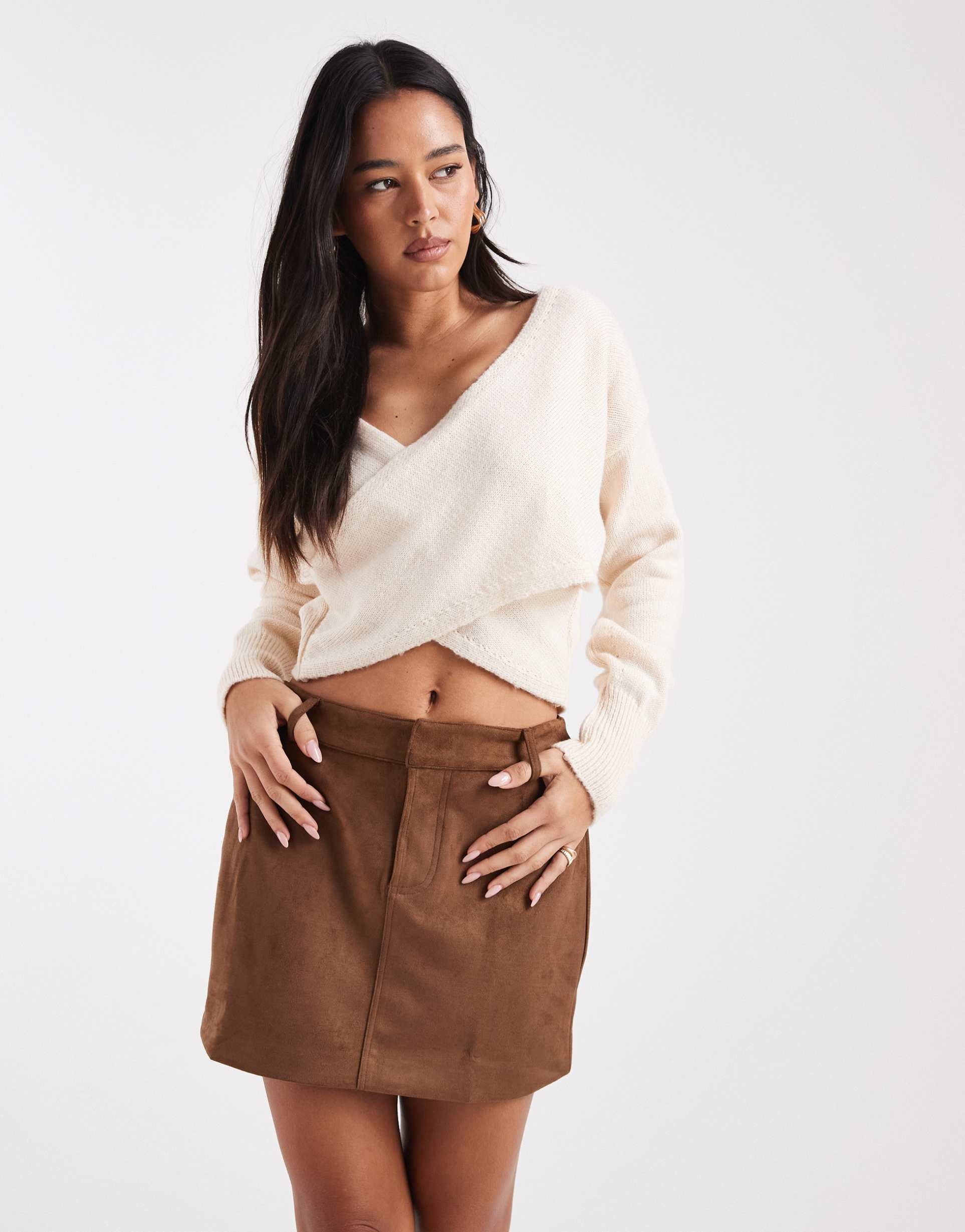 MISS SELFRIDGE KNIT WRAP TOP IN CREAM